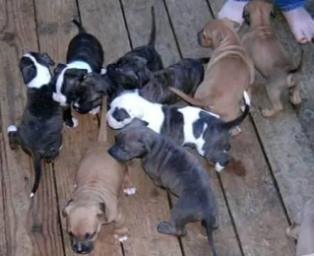 Bred for big heads, thick muscular bodies, and heavy bone structure with loving and loyal temperaments for home security, weight pull, and family companions.